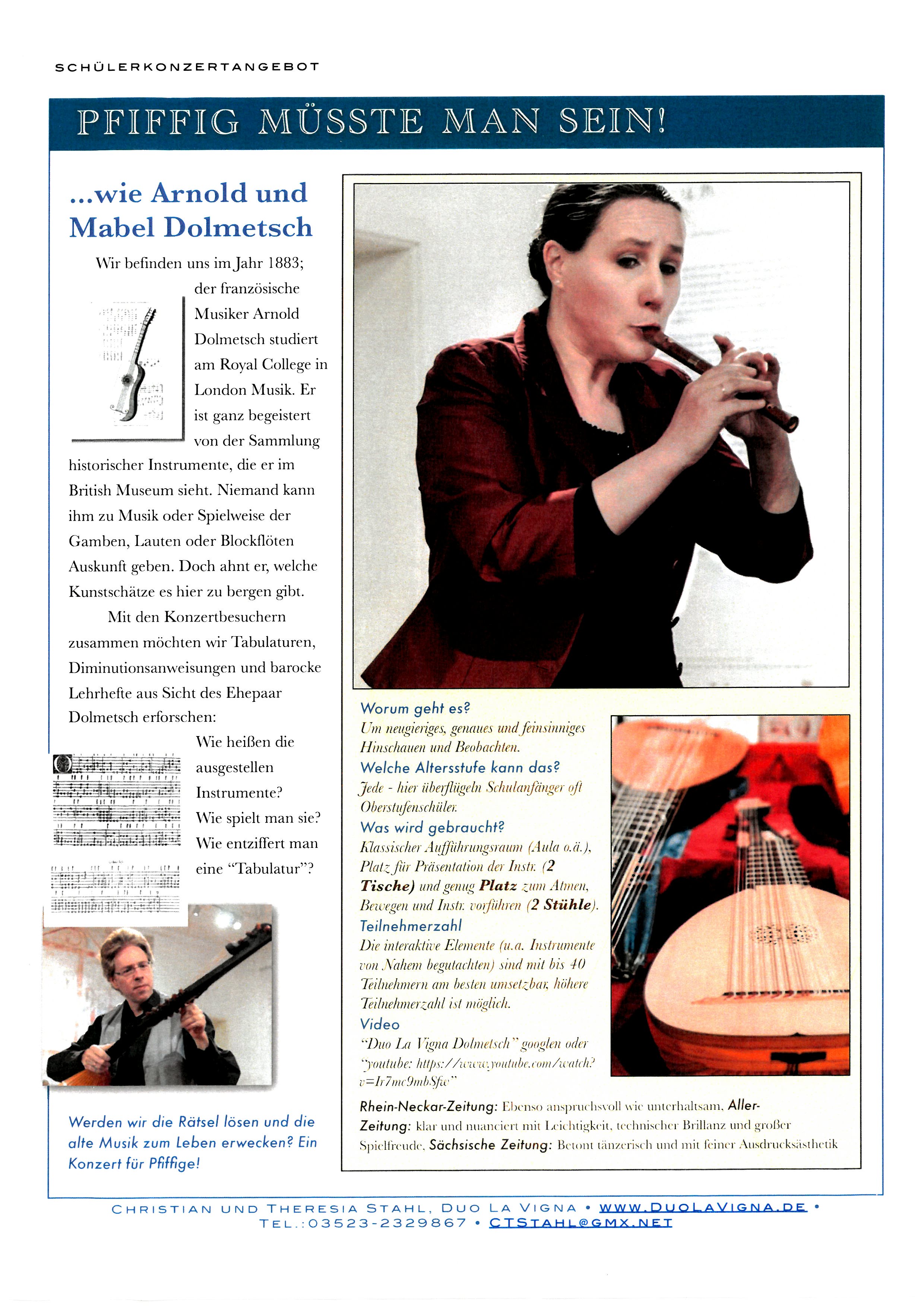 Mit den K onzertbesuchern zusammen möchten wir Tabulaturen, Diminutionsanweisungen und barocke Lehrhefte aus Sicht des Ehepaar Dolmetsch erforschen:
